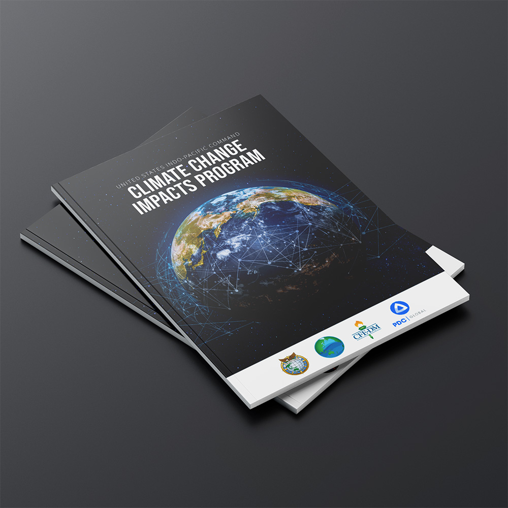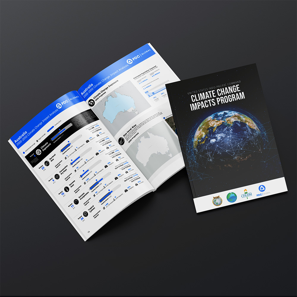 The Climate Change Impacts report book, also known internally as the “Generic Book” was a set of reports from the Pacific Disaster Center (PDC) that showed a 50 year outlook on sea rise in the Indo-Pacific area of operations.