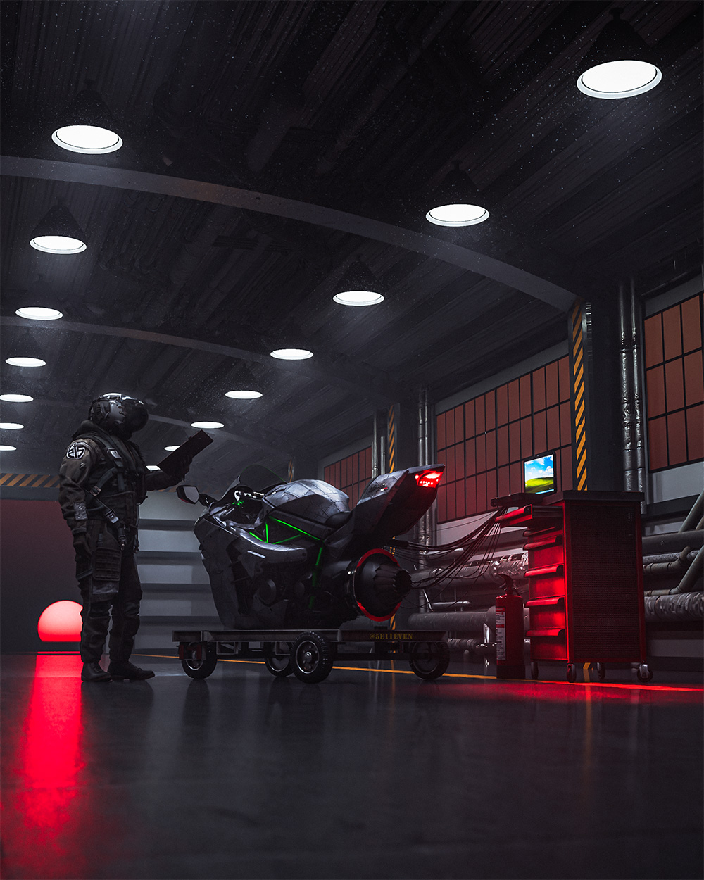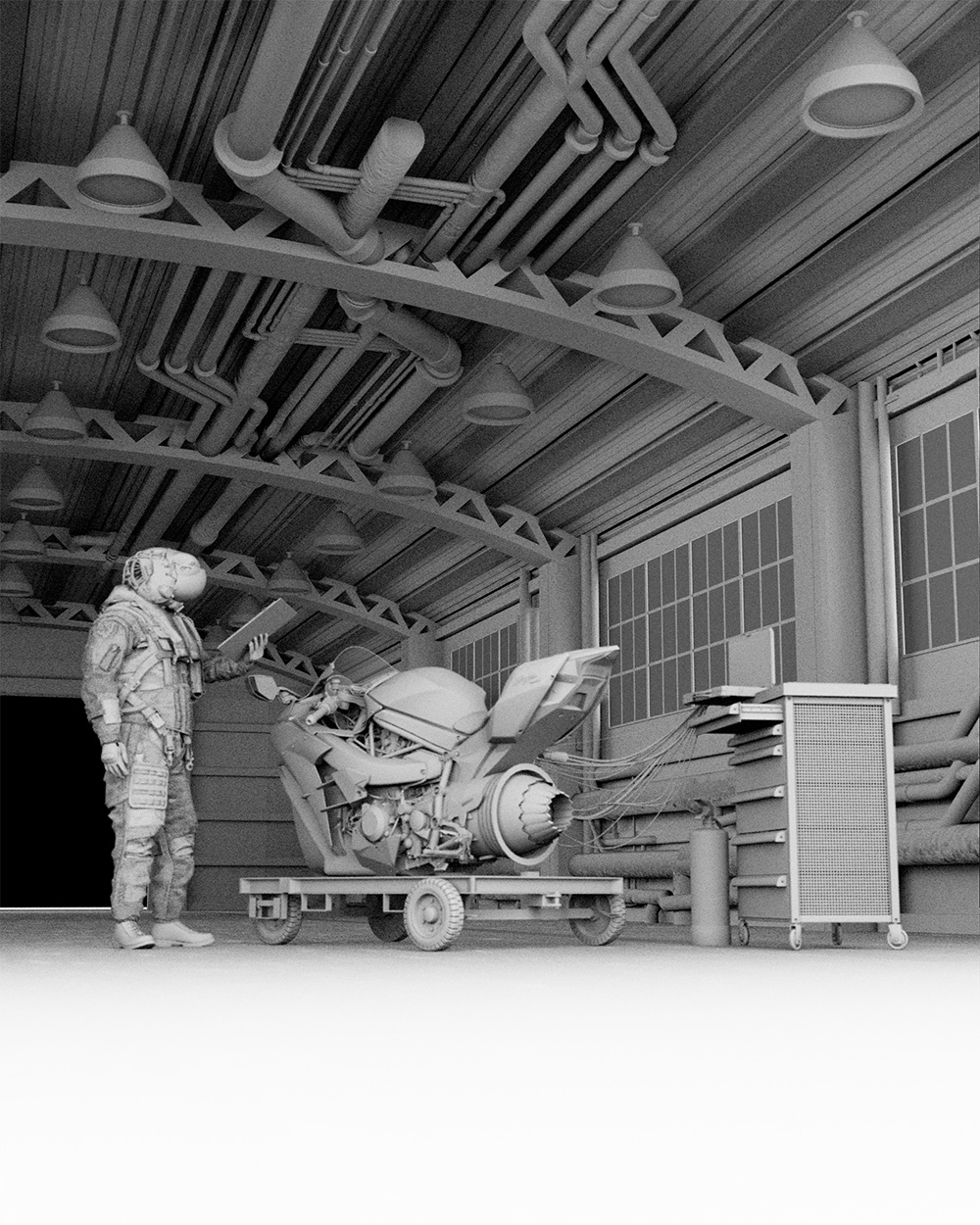 3d render of a hanger scene to house a previous