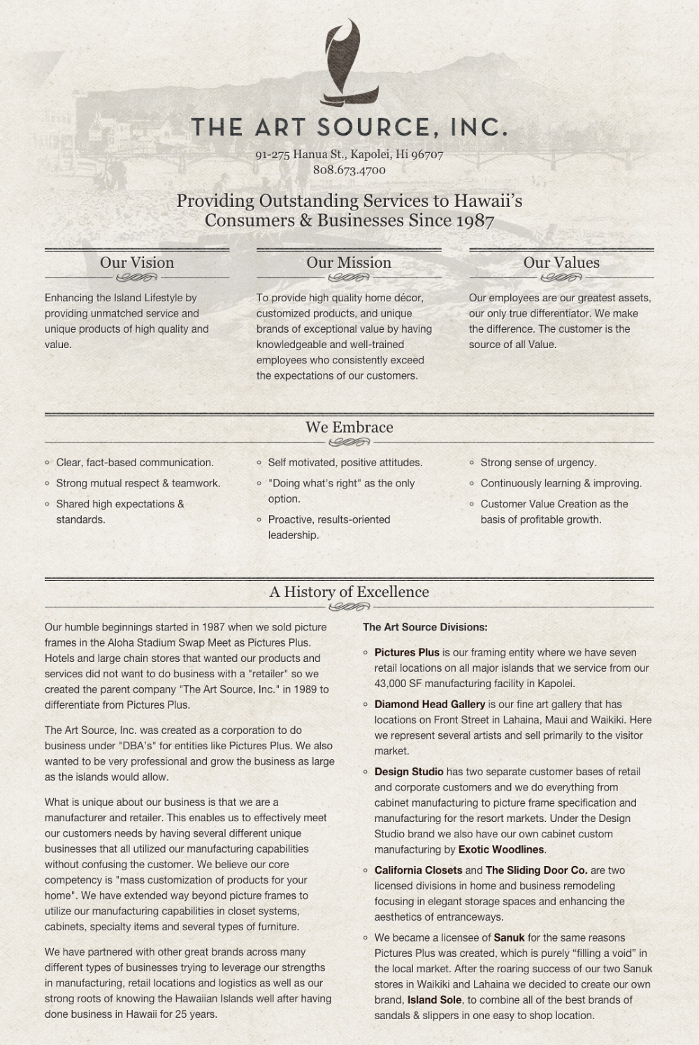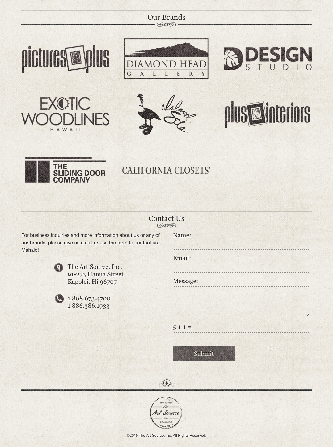 The Art Source Inc. website was a one-page brochure website served as a centralized hub, providing a sleek and intuitive way for visitors to explore all the companies under its corporate umbrella. Designed with a clean, modern layout, the site featured a brief introduction to the parent organization, followed by a visually engaging grid or list of its subsidiary companies. Each company was represented with a logo, and a direct link, allowing users to seamlessly navigate to the respective websites. The site prioritized user experience with responsive design, fast load times, and clear call-to-action buttons, ensuring efficient access to all related brands and services.