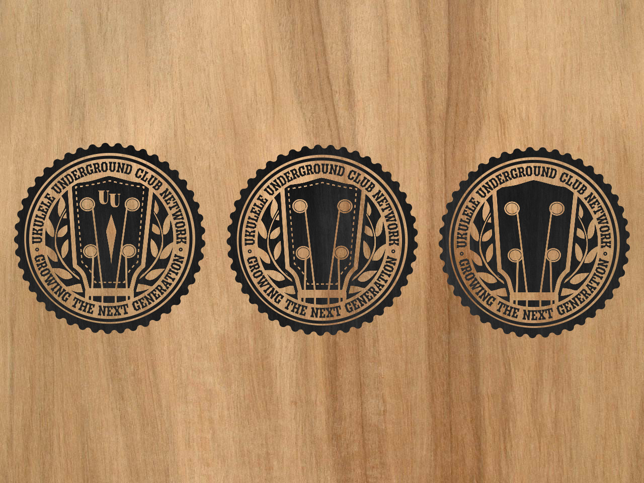 Logo for an ukulele training club with several logo variations.